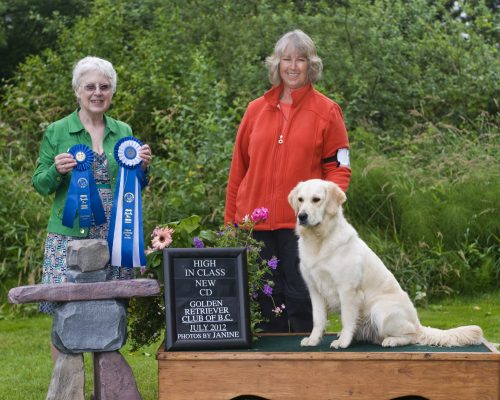 Chai was bred by Joanne Cava and is co-owned with Judi Dunlop. Her grandmother was our lovely Brazen. Together with Judi, Chai has excelled at whatever she has tried. Chai and Judi’s accomplishments include a HIT from the Novice B class, the Eileen Battley hat trick award for attaining a placement in the GRCC National conformation classes, a WC and WCI and a leg towards her CD all on the same weekend. In the spring of 2013 Chai was honoured by the GRCBC with the Ch Invercroft’s Highland Meghan ambassador award for the work she does as a certified therapy dog at the cancer clinic where she is known for her smiling face and low fives. Chai finished her Canadian Championship with Shannon on the lead and now has attained her grand championship with the required BOB under Judge Honey Glendinning. Judi and Chai are currently enjoying working through scent titles. Thank you Joanne for letting us have her, Judi for doing so much with her and Shannon Flynn for showing her when I can’t be there.
